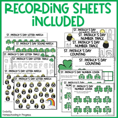 St. Patrick's Day Sensory Bin Math & Alphabet Letter Cards & Activities BUNDLE