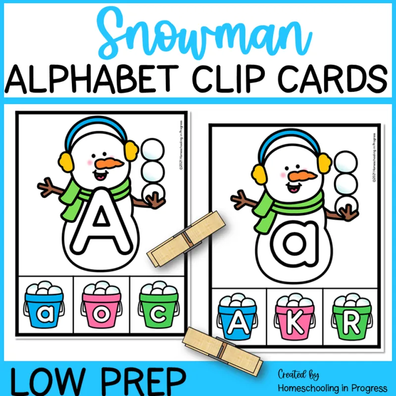 Winter Snowman Alphabet Clip Cards